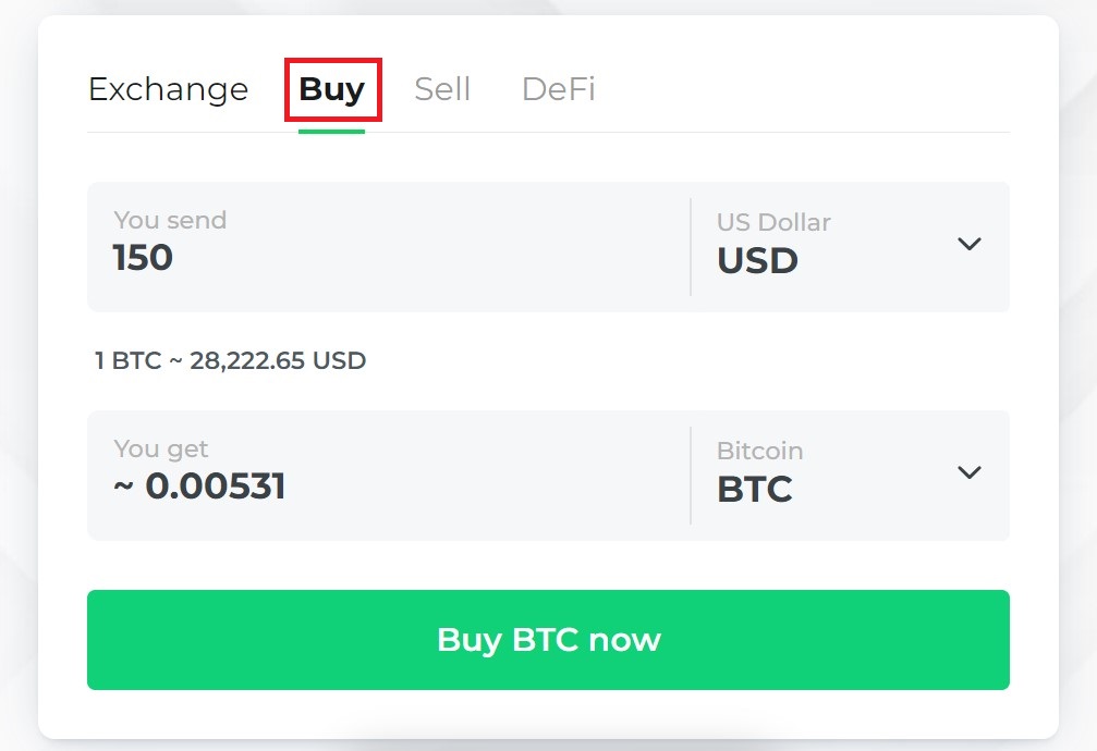 Na domovskej stránke Changelly nájdete výrazné tlačidlo "Kúpiť". Kliknite na toto tlačidlo pre zahájenie nákupného procesu.
