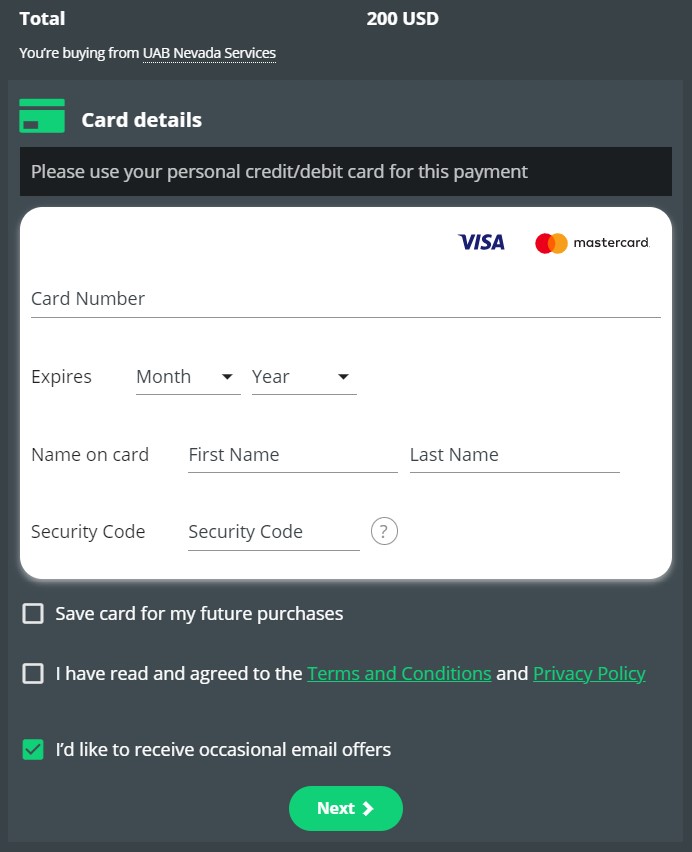 Changelly vás presmeruje na zabezpečenú platobnú stránku, kde budete musieť zadať údaje svojej kreditnej karty. Môžete si byť istý, že Changelly dodržiava prísne bezpečnostné protokoly na ochranu vašich citlivých údajov.