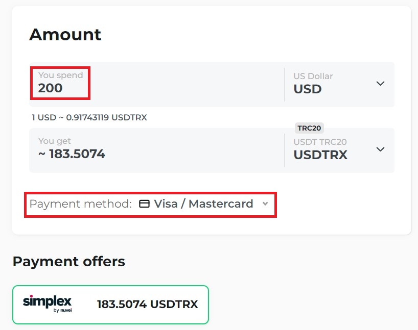 Po vybraní svojej kryptomeny budete musieť určiť množstvo, ktoré chcete zakúpiť. Okrem toho si zvoľte "Kreditnú kartu" ako preferovanú platobnú metódu.