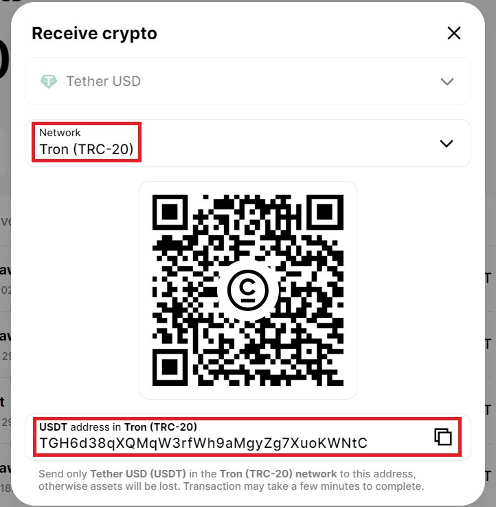 Teraz čaká na vašu pozornosť jednoduchý krok. Otvorte váš Cropty Wallet, nájdite kryptomenu, ktorú chcete kúpiť zo zoznamu, kliknite na ňu, vyberte si možnosť príjmu a vygenerujte si prijímajúcu adresu pre presnú kryptomenu, ktorú ste si vybrali v Kroku 4. Myslite na to, že váš peňaženka priraďuje pre každú sieť samostatnú adresu, preto je nevyhnutné zabezpečiť, aby ste vygenerovali tú správnu. Táto adresa je miesto, kde budú zakúpené kryptomeny na vašej vybranej sieti uložené.