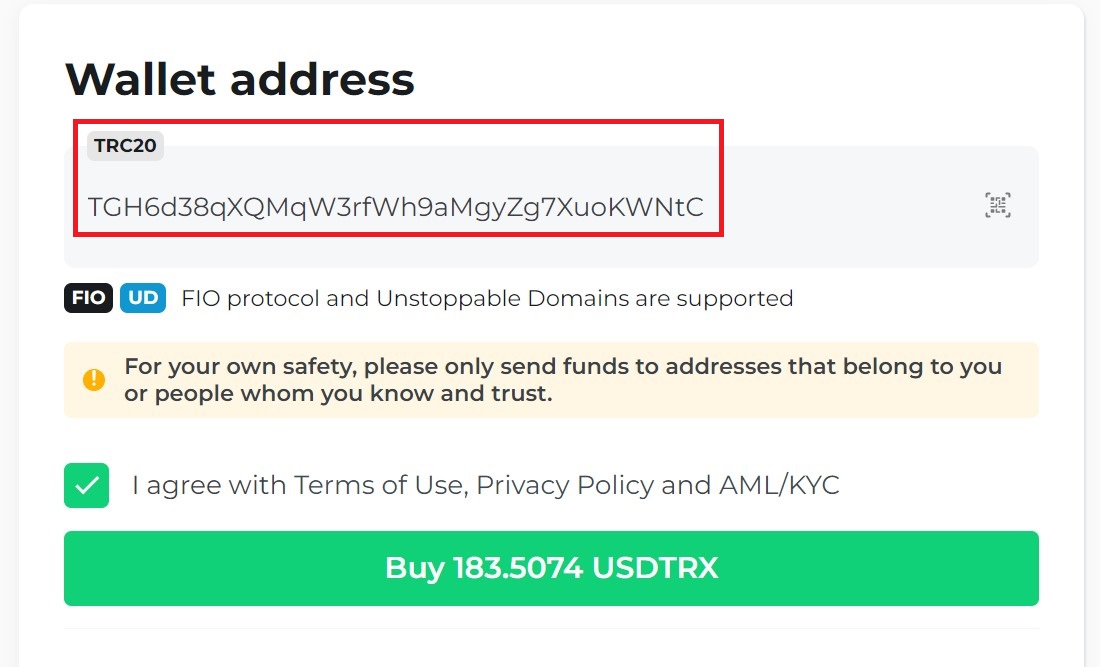 Skopírujte iba adresu peňaženky Cropty, ktorú ste práve vygenerovali a vložte ju do príslušného poľa na Changelly. Venujte chvíľu na dôkladné overenie adresy, aby ste sa uistili, že je správna.