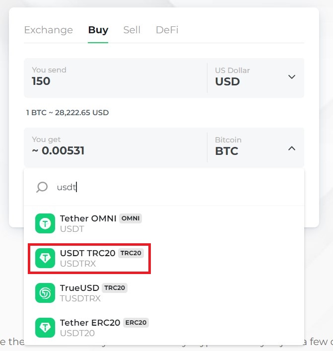 Zobrazí sa vám zoznam dostupných kryptomien. Nájdite a vyberte kryptomenu, ktorú chcete zakúpiť. Pri výbere vášho želaného kryptomenu sa vám zobrazia niekoľko možností, z ktorých každá zodpovedá inej kryptomenovej sieti. Je dôležité vybrať sieť, ktorá sa zhoduje s vašim zamýšľaným použitím.