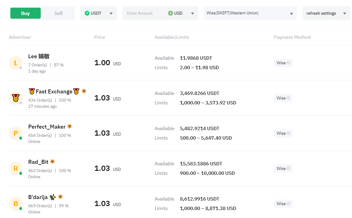 - Narazíte na komplexný zoznam P2P ponúk, z ktorých každá predstavuje jednotlivcov, ktorí sú ochotní predať kryptomenu.